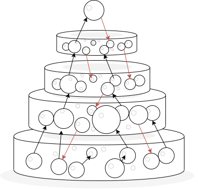 举例来说,如果运行在一个 32 核的硬件系统上,那么可以让这 32 核分别控制 32 层,目标节点 单独占据顶层或某些特定层,中间知识 占据中间的 30 层,操作/行为 则单独占 1 层。 当然,实际比例不一定是这样,但只要分层之后,系统的可视化才有了依托。